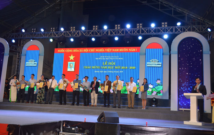 Nhân dịp khai giảng năm học mới, có 02 sinh viên đạt giải Nhì, giải Ba trong kỳ thi Olympic Toán học học sinh - sinh viên Toàn quốc năm 2019 được Bằng khen của Chủ tịch Hội Toán học Việt Nam và Bằng Khen của Chủ tịch UBND tỉnh; trao giấy khen cho 02 đề tài của sinh viên đạt giải Nhất Hội thi Sáng tạo Kỹ thuật tỉnh Quảng Ngãi lần thứ 11 - năm 2019 và 08 sinh viên đạt thành tích xuất sắc trong học tập và rèn luyện năm học 2018-2019, trong đó có 01 sinh viên Lào.