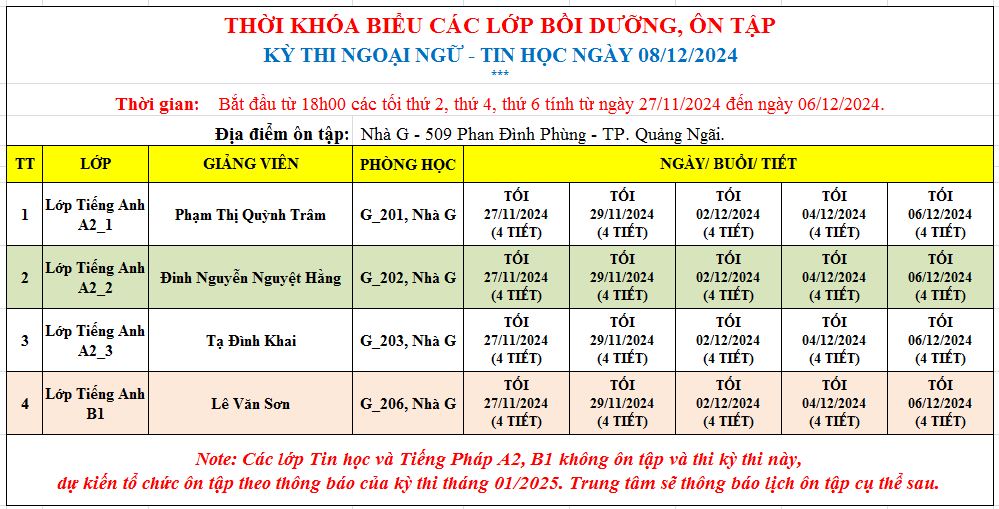 CÁC LỚP TIN HỌC, TIẾNG PHÁP A2 VÀ B1